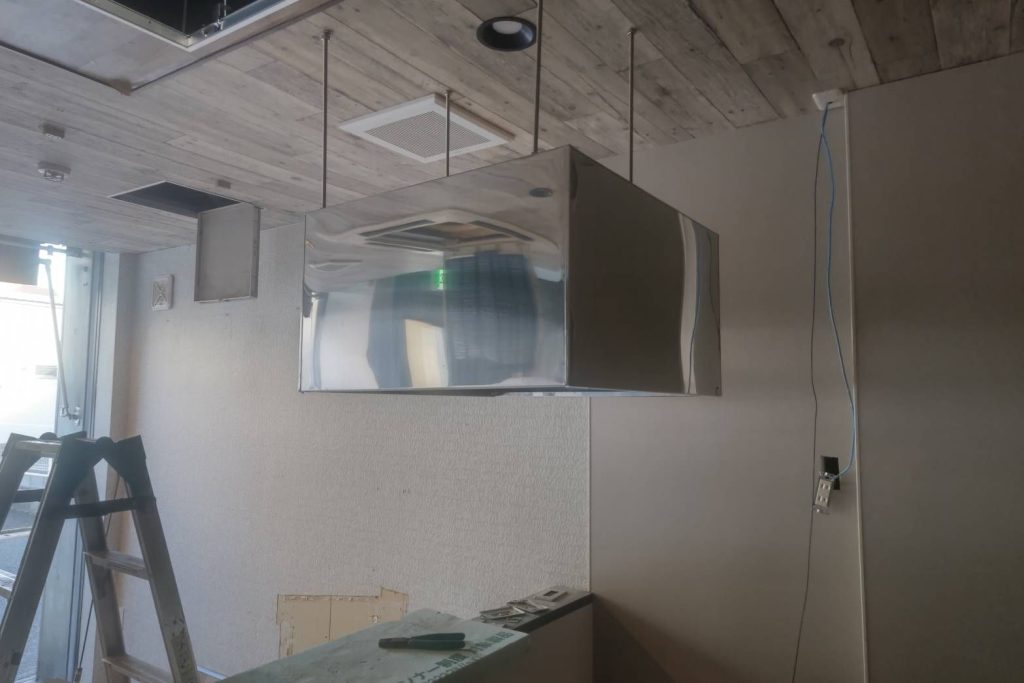 店舗内換気フードの取付例になります。